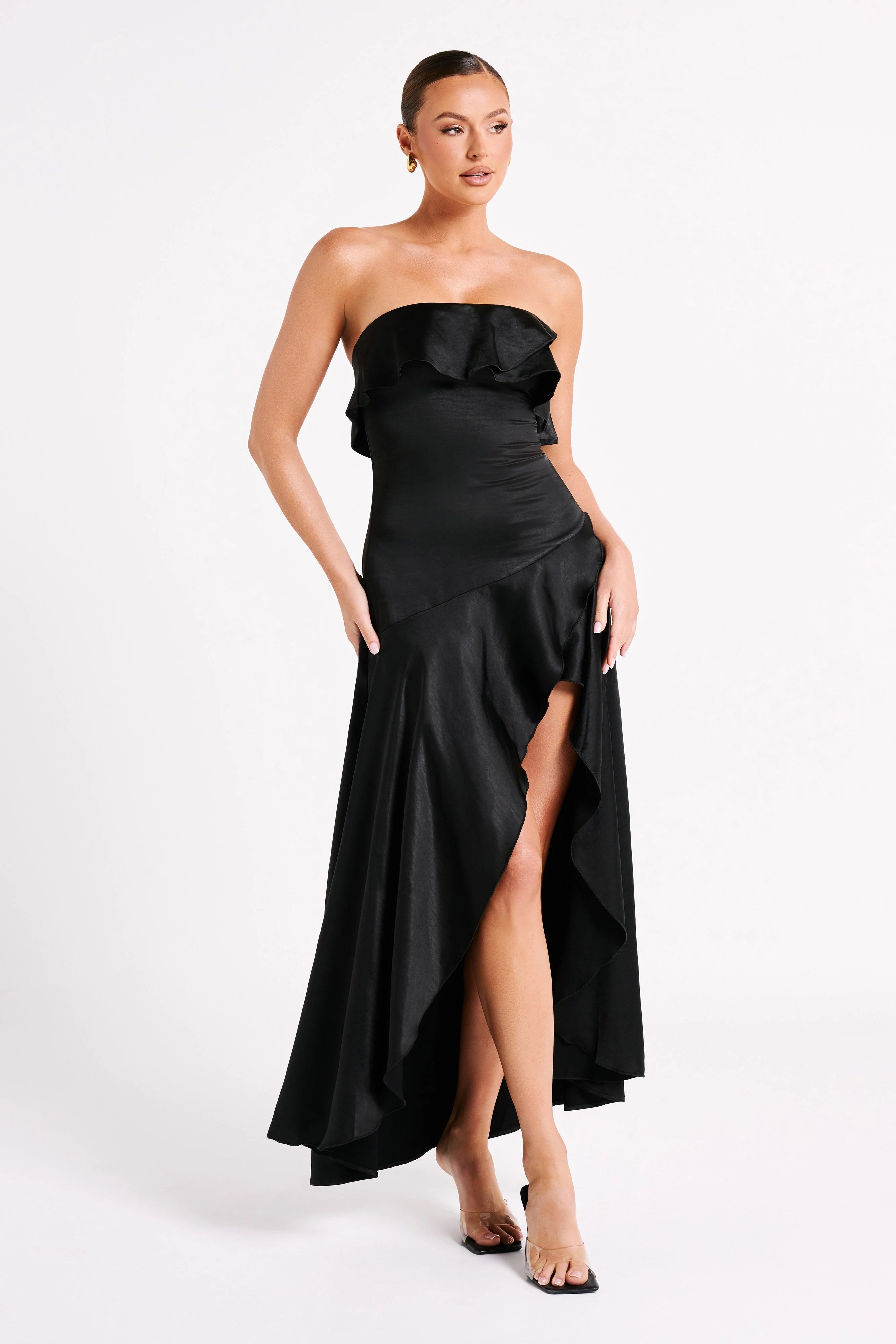 Sulianna Strapless Ruffle Midi Dress - Black