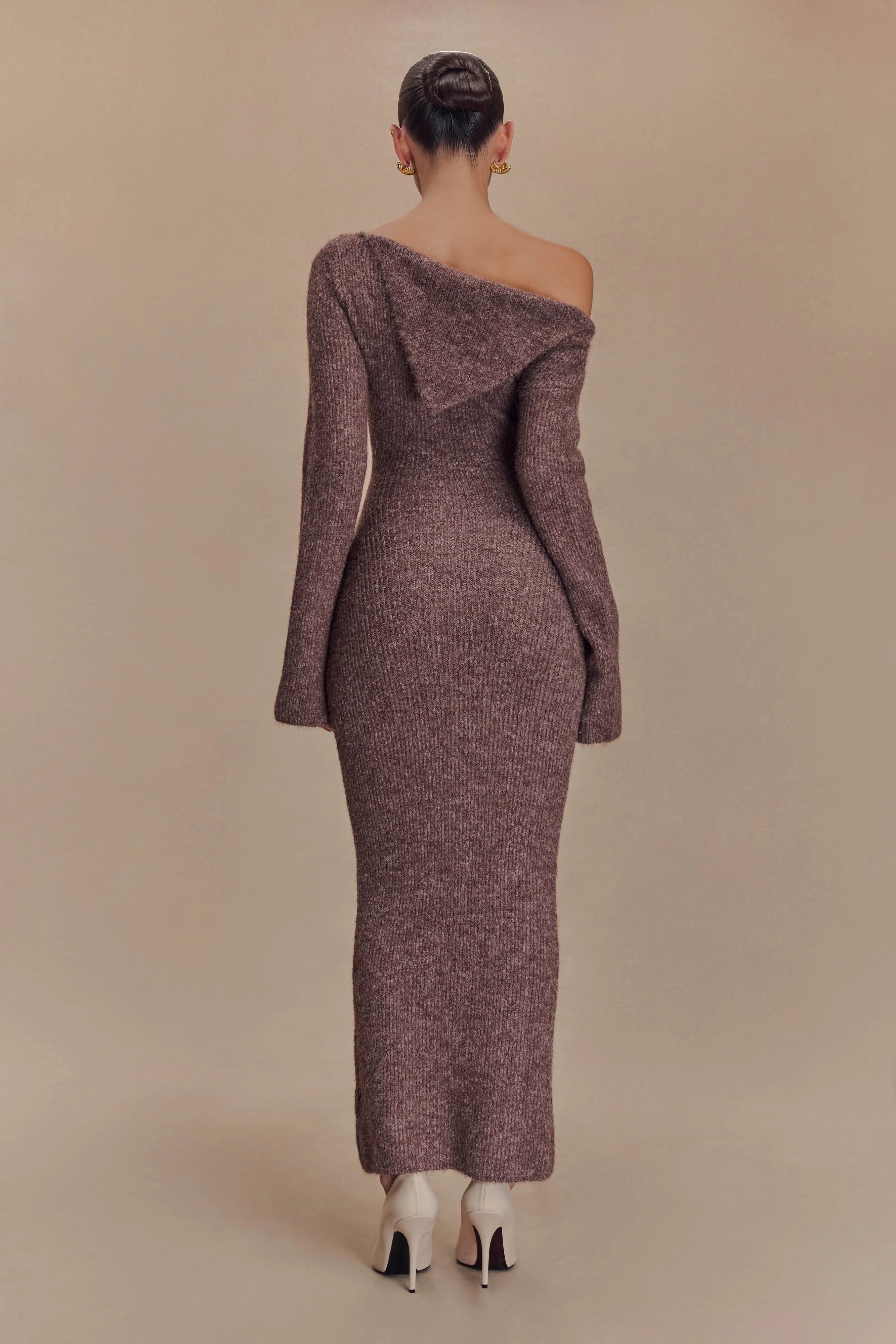 Magenta One Shoulder Fluffy Knit Midi Dress - Pecan
